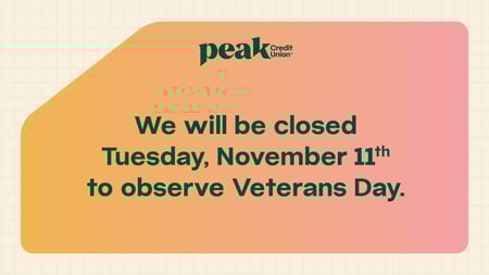*APY = Annual Percentage Yield. Rates may vary by region. Dividends are calculated by the daily balance method which applies a daily periodic rate to the balance in the account each day. Dividends are compounded monthly and will be credited monthly. Fees may reduce earnings. Rates may vary by region. Call Peak at (800) 258-3115 for details. All rates and programs are subject to change at the discretion of administration. Business (Explorer or Voyager) Checking Accounts earn dividends. IOLTA Trust Checking: Business (Explorer, Voyager & IOLTA Trust) Checking Accounts earn dividends. Minimum balance needed to receive dividends. For more information see Business Deposit Disclosures.